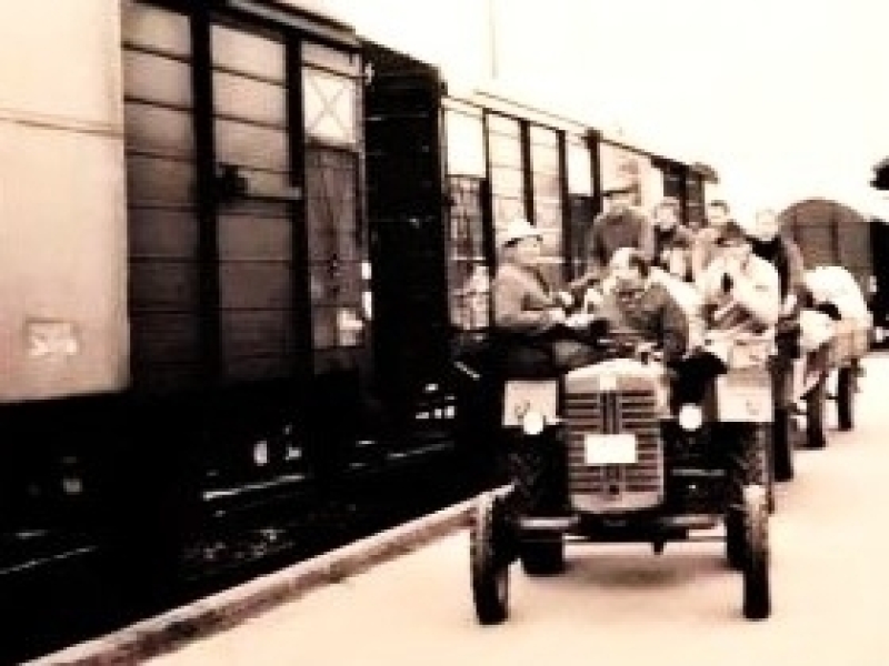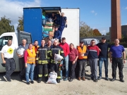 Am Samstag, 11. Oktober startete morgens um acht Uhr die letzte Sammelaktion. Zwei duzend Helfer*innen, darunter die Feuerwehrjugend, fuhren mit fünf LKWs und Traktoren mit Anhängern Haushalt für Haushalt ab. Damit das Verladen fix geht, hat man Trittbretter aus Holz gebaut.
