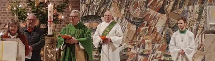 Auf dem Bild von links: Sabine Eltschkner, Paul Osterried, Kaplan Kramert und Diakon Elmar Schmid