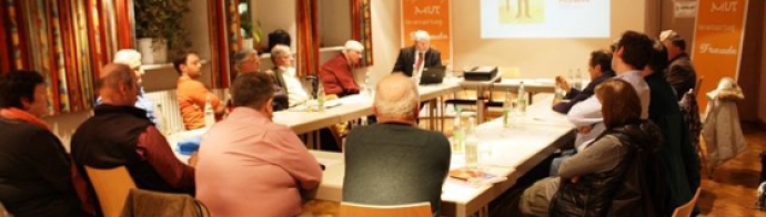 Prof. Dr. Peter Guggemos, Professor für Arbeitsmarkt- und Sozialpolitik an der Hochschule der Bundesagentur für Arbeit in Mannheim, brachte das Thema den 19 Teilnehmenden näher. Eindrücklich wurde an Zahlen, Daten und Fakten zur Erwerbstätigkeit Älterer (auch über 65 Jahre hinaus – freiwillig oder aus Not) in die Problematik eingeführt.