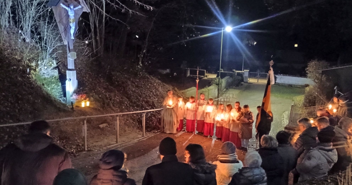 Musikalisch wurde die Eucharistiefeier von der Gruppe „Vocalis“ gestaltet. Nach einer Lichterprozession wurde am Kreuz, das anlässlich der Seligsprechung Adolph Kolpings errichtet worden ist, um seine Heiligsprechung gebetet. Danach gab es „wärmende“ Getränke, süße Stärkungen und angeregte Gespräche im Kolpingzimmer im Pfarrhaus. Dankenswerterweise feierte in diesem Jahr Professor Hans Rechenmacher den Gedenktag mit der Kolpingfamilie.