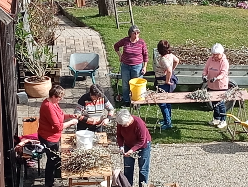 Das beigefügte Bild zeigt die Kolpingfrauen bei der Herstellung der Palmbüschel – ein schöner Einblick in die engagierte Arbeit hinter den Vorbereitungen zum Osterfest.
