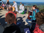 Ortpfarrer und Präses Ulrich Lindl vertiefte, bezugnehmend auf die biblischen Lesungen, diese auch heute noch gültige Aussage. Für die musikalische Umrahmung sorgten Kirchenmusikerin Andrea Steger und Helmut Englisch. Mit Banner und Fahnen waren auch die Kolpingfarben Orange und Schwarz gut erkennbar. Nach einem zünftigen Mittagessen gib es dann wieder auf ganz unterschiedlichen Wegen zu Fuß oder aber mit dem Sessellift zurück ins Tal nach Buching.
