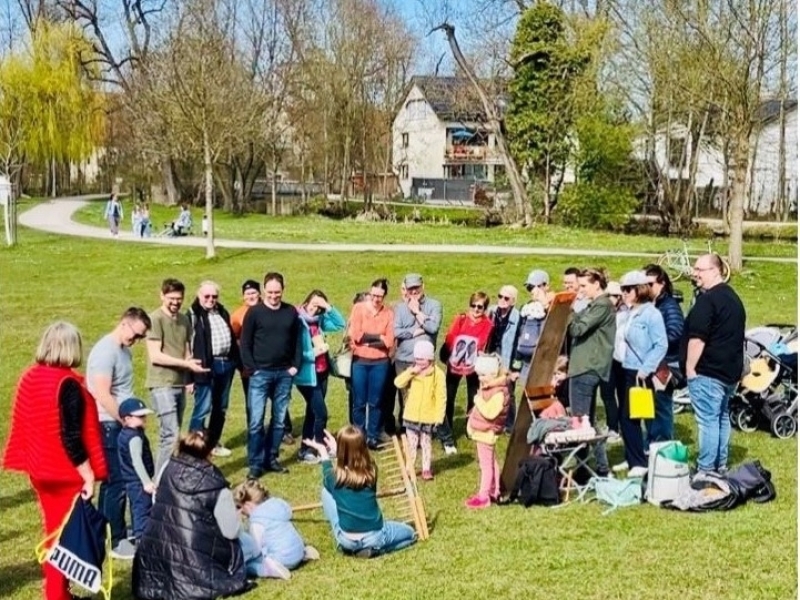 Traditionell am Ostermontag traf sich die Kolpingsfamilie Mering zur Emmauswanderung- dieses Jahr am 06.04.2026 vor Ort in Mering, wo sich die Teilnehmenden auf den Weg zu mehreren Kreuzen und u.a. zur Samerkapelle machten. Bei der letzten Station am Brückenmarterl am Badanger gab es ein generationsübergreifendes Event- das sogenannte Oarwoagln.