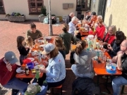 Nach der großen Anstrengung und Anspannung ging es zum Jugendheim, wo bei bestem Wetter im Innenhof die Eier von mitgebrachter Brotzeit ergänzt wurden.