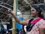 Auf dem weiteren Weg zur Küste liegt die Pilgerstätte Thachoorkonam. Fünf Kolpingsfamilien sind zusammengekommen, um von ihrer Arbeit zu berichtet. Es ist ein richtiges soziales Netz entstanden: man hilft sich finanziell bei Krankheit, einem Todesfall, Stipendien für die Kinder oder sogar Zuschüssen für die Hochzeit. Einige der Gruppen bestehen schon seit 20-30 Jahren und sie konnten ihren Mitgliedsbeitrag hat sich von anfänglich 2 auf 1000 Rupien gesteigert. So berichtet Mary Santhi, dass sogar ihre beiden Töchter mittlerweile schon Kolpingmitglieder sind. Ajitha ist dagegen erst seit 3 Jahren dabei, eifrig lernt sie, wie soziale und finanzielle Netzwerke geknüpft werden können.