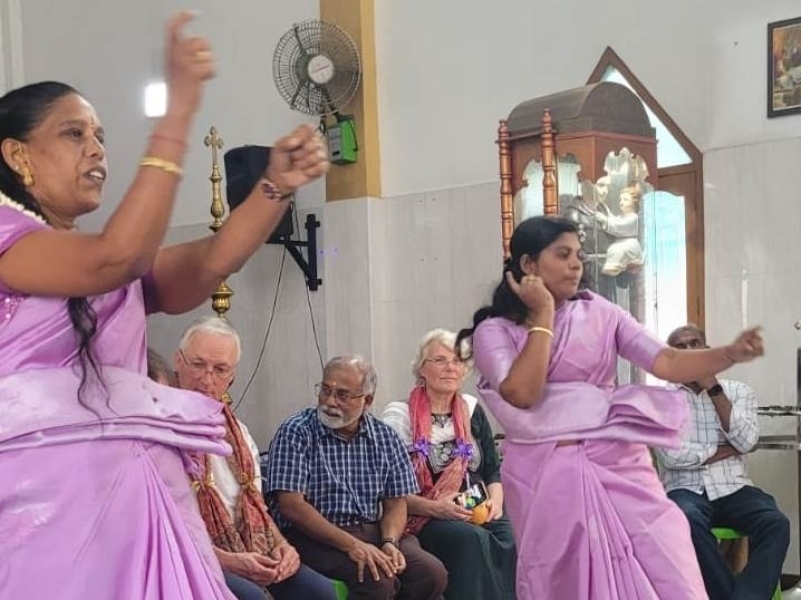 Der Freitag begann mit einer vierstündigen Autofahrt nach Pannur, das ca. 60 km von Chennai entfernt ist. Mit Pauke und Trompete und mit den traditionellen Blumenketten, einem Punkt auf die Stirn und Tüchern um die Schulter wurden die Gäste aus Deutschland von den Kolpinggruppen in einem Pfarrsaal der Pfarrei Our Lady of Good Health in Pannur herzlich begrüßt.