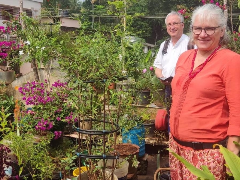 Beim Besuch bei Magdalena, der Kolping-Diözesankoordinatorin, sagt Father Maria: „Zusammen sind wir Kolping. Unsere Gäste haben eine blasse Hautfarbe, ihr eine dunkle. Kolping ist bunt!“ Die Leiterin der Gruppe Beaula Jeba Rani sagt: „Am Anfang hatten wir keine Ahnung, was wir tun können. Durch Kolping bekamen wir ein Training, wie man einen Garten pflegt, und wie man achtsam mit der Natur umgeht.“ Inzwischen helfen sie sich nicht nur sich selber, sondern auch den anderen Menschen in der Pfarrei. Sie betreuen Kranke, geben selbst Trainings und tragen ihr Wissen zu den Themen Hygiene, Erziehung und Selbständigkeit weiter.