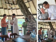 Zurück aus dem Gebirge warten weitere Kolpingsfamilien auf den Besuch. Eine Frau, die am Milchvieh-Projekt teilnimmt und Ziegen hält, zeigt ihre Tiere. Hier wird sichtbar, wieviel Spenden, wie anläßlich des 50-jährigen Priesterjubiläums von Alois Zeller, für ein Tier bewirken können. Nebenan wir unter der lizenzierten Marke „Kolping Golden Honey“ im Verkauf der Pfarrei Honig verkauft.