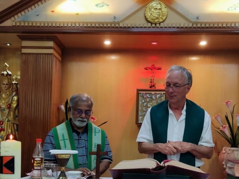 Der Tag beginnt für die deutschen Gäste und ihre Begleitung wieder sehr früh. Mit einem zweiten Inlandsflug geht es die ca. 700 km von Kochi (auch Cochin) zurück nach Chennai. Während die Teilnehmenden von Kolping Augsburg sich noch einmal auf den Weg machen, um Geschenke für Ihre Liebsten zuhause zu kaufen, sind Father Maria Soosai und Diözesanpräses Wolfgang Kretschmer so ins Gespräch vertieft, dass sie die Zeit vergessen.